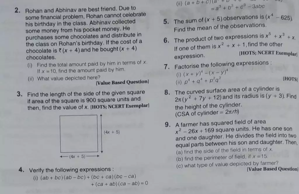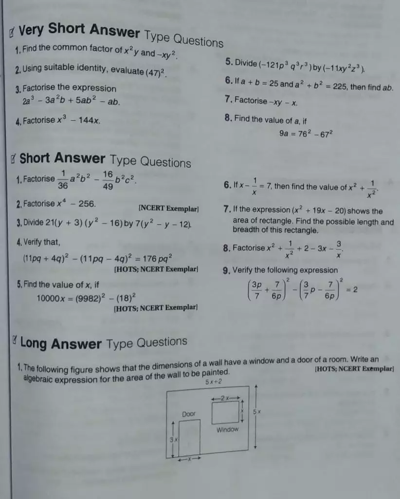 Home Work Class 8